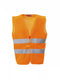 Warnweste mit Reflexstreifen, Zweinadelnaht, Klettverschluss, vollständig gesäumt.